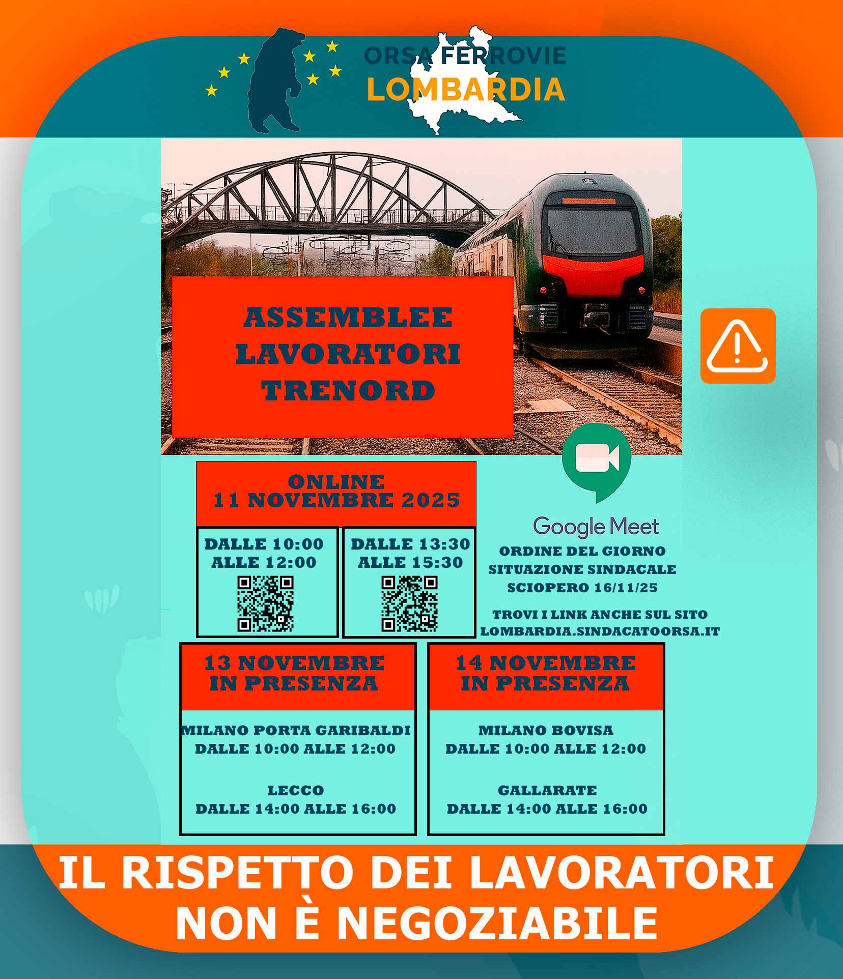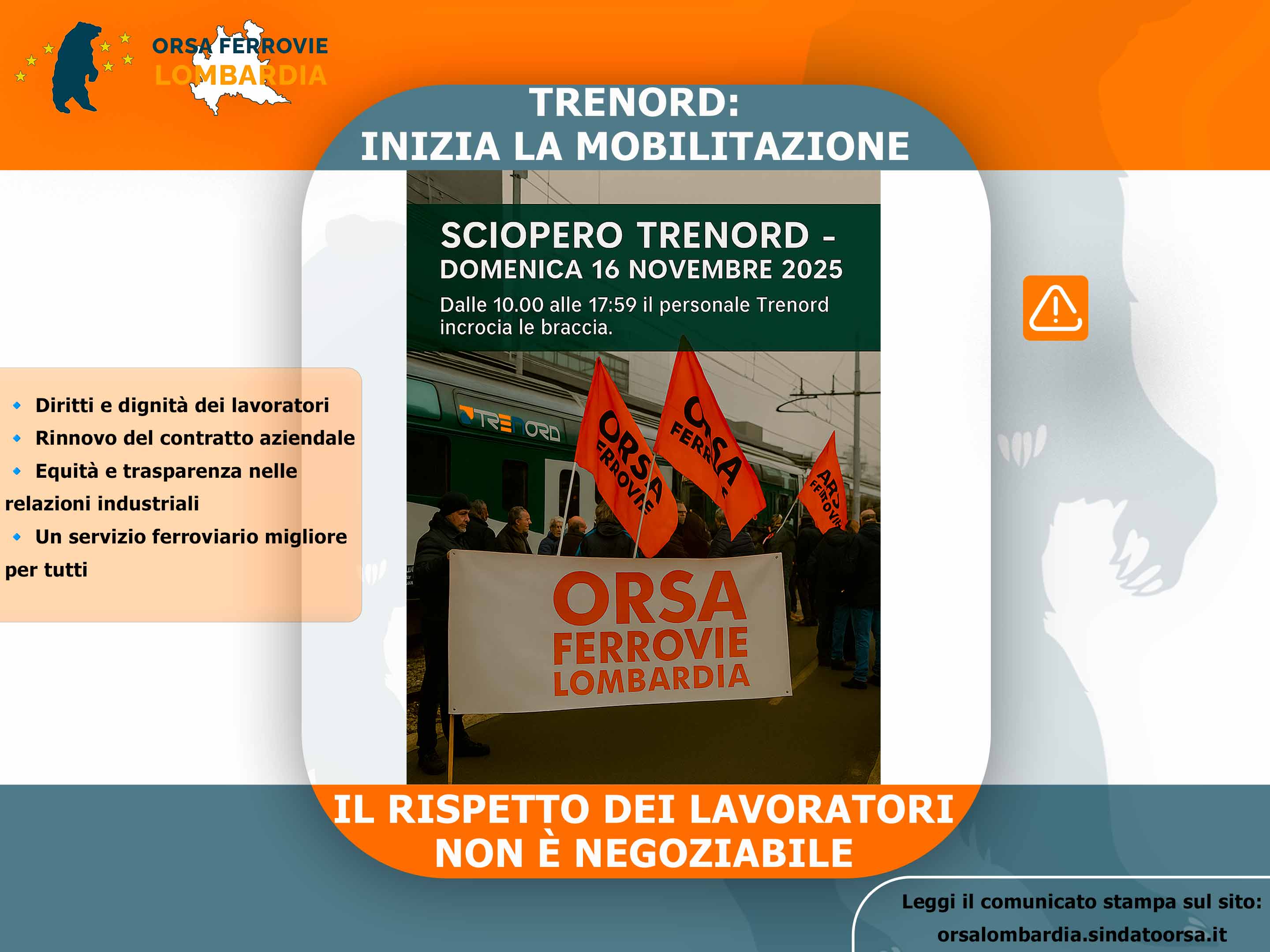 ORSA Ferrovie ha deciso di non sottoscrivere il Verbale di Accordo siglato il 3 novembre 2025 tra Trenord e altre organizzazioni sindacali, relativo all’organizzazione del lavoro in vista delle Olimpiadi Invernali Milano-Cortina 2026.